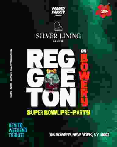 NO BS! Just Perreo! Playing Benito's Hits All Night! This is the hottest Pre-Super Bowl Party in New York City! No lo pienses dos veces! Downtown’s go-to reggaeton night lands at Silver Lining by Tao Group. This is a one -of-a-kind perreo parrty never done before. Every week. One destination. Downtown perreo energy. Come dressed to impress. VIP Bottle Service Available, For Reservations & More Information: info@perreoparrty.com / Allan: 646-263-4593 Event Information: Doors: 11:00 PM - late Follow us for perreo updates on Instagram & Facebook ! 21 & over with proper ID (Physical ID required) DRESS CODE We encourage personal expression through fashion while maintaining an upscale atmosphere. To ensure entry, please follow these guidelines. DON'T wear clothing with offensive language, athletic shorts, slides, swim trunks or sweatpants. DON'T wear Timberlands, sandals & flip flops. DO dress stylishly. Jeans (no excessive rips), smart casual for men (collared shirts, stylish t-shirts, jeans), intentional baggy styles are allowed, dress shoes or clean sneakers, forward-facing hats (must compliment your look). Team jerseys permitted only during major sports events & independence day celebrations. Doormans descrition. Presented by Perreo Parrty & Tao Group Hospitality