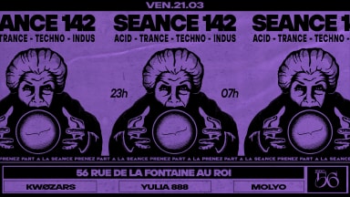 SÉANCE 142 #2 PRENEZ PART LA SÉANCE ! Ce 21.03.25, SÉANCE 142 prend le contrôle du Studio 56 pour cette première édition en format club ! HEURE: 23H00-7H00 LIEU: STUDIO 56 – 56 rue de la Fontaine au Roi, 75011 Paris GENRE: Techno, Acid, Trance, Hard Trance, Hard Techno, Indus ▬▬▬▬▬▬ LINE UP ▬▬▬▬▬▬ 23:00 - 00:30 COMBINOID (AMBIENT, RAW TECHNO, GROOVY HYPNOTIC) SC:https://soundcloud.com/combinoid IG:https://www.instagram.com/combinoid_ 00:30 - 02:10 MOLYO : (ACID, PEAKTIME, HARDTRANCE, HARDTECHNO) SC : https://soundcloud.com/molyo IG : https://www.instagram.com/molyo.ofc 02:10 - 03:50 YULIA : (TRANCE, ACID, HARDTECHNO) SC: https://soundcloud.com/yulia-metline IG: https://www.instagram.com/yulia___yulia___888 03:50 - 05:30 KWOZARS ( HARD TECHNO, RAW HYPNOTIC, INDUS) SC : https://soundcloud.com/kwozars IG : https://www.instagram.com/kwozars 05:30 - 07:00 KÄL (HARD TECHNO, ACID, HARDTRANCE) SC: https://soundcloud.com/slashklmusic IG: https://www.instagram.com/kal.wavv/ ▬▬▬▬▬▬ INFOS PRATIQUES ▬▬▬▬▬▬ 📅 Date : 21 mars 2025 🎶 Styles : Techno, Acid, Trance, Hard Trance, Hard Techno, Indus, Raw Hypnotic 📍 Lieu : Studio 56 56 Rue de la Fontaine au Roi, 75011 Paris ⏰ Horaires : 23H / 7H Ⓜ️3 - PARMENTIER Ⓜ️5, 8, 9, 11 - REPUBLIQUE Ⓜ️11 - GONCOURT ▬▬▬▬▬▬ 𝖳𝖠𝖱𝖨𝖥𝖲 & 𝖳𝖨𝖢𝖪𝖤𝖳𝖲 ▬▬▬▬▬▬ 🎟️ Billeterie - places limitées Early Members Tickets : 8,99€ Regular Members Tickets : 10,99€ Regular Tickets : 12,99€ ✅ Tickets dispos sur place 15€ ! ⚠️ Vestiaire obligatoire : 2,00€ ▬▬▬▬▬▬ R E G L E S D E V I E ▬▬▬▬▬▬ ⛔️ Comportements inappropriés (racistes, misogynes, homophobes...) exclus instantanément! 🔞Interdit aux moins de 18 ans 💪🏻Pas de violence sous peine d’exclusion ⚠️Respectez le lieu qui nous reçoit 🏳️‍🌈 LGBTQIA+ friendly ⚠️ Faites attention à vous et vos amis 💊 Attention a ce que tu consomme 🍸L’abus d’alcool est dangereux pour la santé, contrôle toi et ne reprend pas ta voiture 🚗 💧Buvez régulièrement de l’eau __________________________________________ La direction se réserve le droit de refuser l’entrée et d’exclure toute personne en état d’ébriété et/ou au comportement inapproprié.