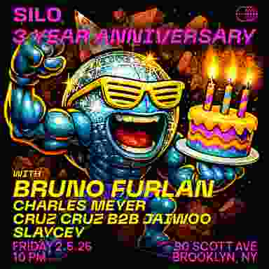 On February 6th, we're celebrating three years of euphoric nights in Brooklyn with a free party at SILO. Gracing the decks to mark this milestone with us will be none other than Bruno Furlan! From Brazil’s underground to global stages, Bruno Furlan’s innate talent and early immersion in DJ culture fueled his rise, founding Whistle Records and earning acclaim with releases on Dirtybird and Relief. His 2023 hit “BongoLoco” became one of the year’s top 50 most-played tracks among DJs, showcasing his influence and innovative style. Collaborating with electronic music icons and producing celebrated tracks like “Another Planet,” he continues captivating global audiences, his career marked by prestigious festivals and a dedicated fanbase. Bruno’s unique blend of skill and passion redefines electronic music, his infectious grooves and dedication shaping an inspiring artistic journey. Complimentary champagne toast at midnight!