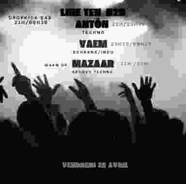 SIX revient au dropkick pour une soirée techno qui débutera avec MAZAAR, sur une vibe techno bien entrainante et dansante, enchainant sur un B2B avec LINE TEN et ANTÕN, pour de la Techno comme on aime, et pour finir VÆM s'occupera de clôturer la soirée sur un rythme plus effréné.