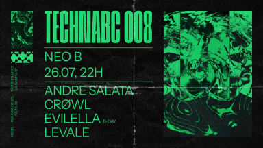 TECHNABC 008 Depois de uma mega comemoração de 1 ano de existência, o Technabc apresenta sua oitava edição para celebrar os 30 anos de vida do seu fundador: eVilella! Line Up: Andre Salata Crøwl eVilella (Bday) Levale