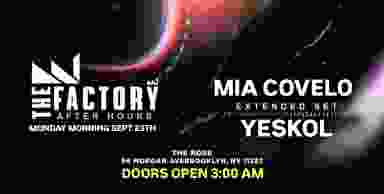 The Factory Aftter hours Bringing the iconic Ibiza party spirit to the heart of Brooklyn MIA COVELO talent and a renowned DJ From Brooklyn - Miami and Ibiza - will be taking over the decks, delivering those irresistible vibez alongside YESKOL Make sure to secure your advanced tickets to save and party till dawn! Not To be missed Doors open 3:00AM