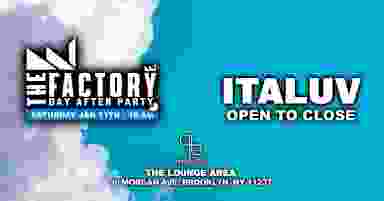 The Factory Day Aftter party Bringing the iconic Ibiza party spirit to the heart of Brookllyn ITALUV talent and a renowned DJ From Brooklyn Miami and Ibiza will be taking over the decks, delivering those irresistible vibez Alongside Make sure to secure your advanced tickets to save and party till dawn! Not To be missed Doors open 10:00 AM