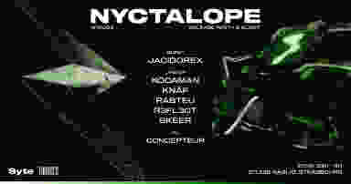 Le 27 septembre, c’est à Strasbourg que nous serons de retour pour la troisième édition de NYCTALOPE, cette fois-ci en collaboration avec Thunder. Pour la première fois, NYCTALOPE sera placé sous la bannière de Rivalité, le dernier VA du label. Nous retrouvons alors les 5 artistes de la compilation : KODAMAN, KNÄF, RABTEU, R3FL3CT et SKEER qui vont embraser le club au rythme de leur puissant kicks et sonorités obscures. De plus, pour lier ces univers Techno et Tekno, nous invitons un guest de choix : JACIDOREX.