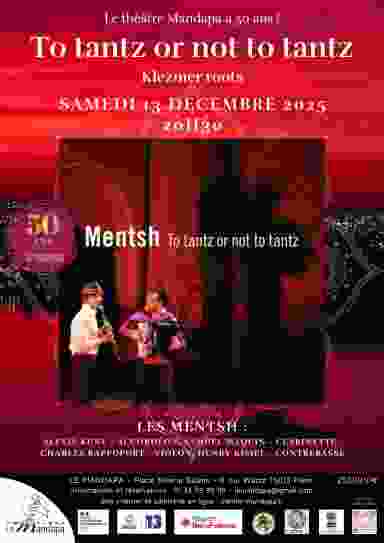 Fidèle à l’esprit festif et nomade du klezmer, Mentsh fait revivre cette musique de l’âme et la réinvente avec des influences éclectiques. Tour à tour tendre, poétique et dansant, leur Klezmer oscille entre euphorie et recueillement. Depuis plus de 20 ans, Mentsh s’illustre dans le paysage du klezmer français et européen. Les Mentsh : Alexis Kune - Accordéon Samuel Maquin - Clarinette Charles Rappoport - Violon Henry Kisiel - Contrebasse