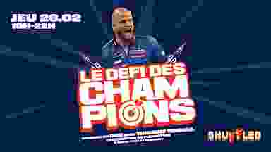 Jeudi 26 février, de 19H à 22H, préparez-vous à viser le bullseye : Le Défi des Champions arrive à Shuffled Paris pour une soirée fléchettes pas comme les autres… avec un invité très spécial : Thibault Tricole, champion de France et d’Europe. Oui, oui. Le vrai. Et oui, vous pourrez l’affronter !