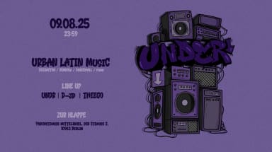 UNDER es un lugar donde las vibras underground no solo se escuchan, se sienten. Una apuesta artística a los géneros urbanos latinos: desde el reggaetón crudo y el perreo sucio, hasta el funk brasileño, el dembow, el dancehall y los beats afrolatinos que marcan el pulso de nuestra cultura. 📍 El próximo 09.08. nos vemos en un nuevo venue que vibra en frecuencias subterráneas: Zur Klappe, uno de los spots más auténticos del underground berlinés. 📅 Fecha: 09.08. 🕛 Hora: 23:59 🎧 Line-up: UNDR, DJ-D, THEEGO 💥 El cupo es muy limitado. Recomendamos asegurar sus tickets ASAP. UNDER no solo vuelve. UNDER se transforma. Y tú estás invitadx a vivirlo. Att:  UNDER Team - - - - - English Version - - - - - UNDER is a place where the underground vibes aren’t just heard — they’re felt. An artistic tribute to Latin urban genres: from raw reggaetón and dirty perreo to Brazilian funk, dembow, dancehall, and afrolatin beats that set the rhythm of our culture. 📍 On August 9th, we’re taking over a new venue that pulses with underground energy: Zur Klappe, one of the most authentic underground spots in Berlin. 📅 Date: 09.08. 🕛 Time: 23:59 🎧 Line-up: UNDR, DJ-D, THEEGO 💥 Space is very limited — we recommend grabbing your tickets ASAP. UNDER is not just back. UNDER is evolving. And you’re invited to be part of it. Att: UNDER Team