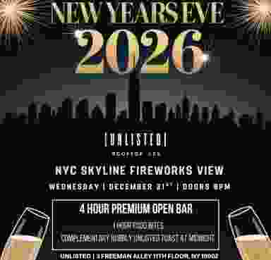 Wednesday, December 31st, 2025 - UNLISTED Rooftop New Year’s Eve 2026 | Lower East Side NYC Open Bar Party