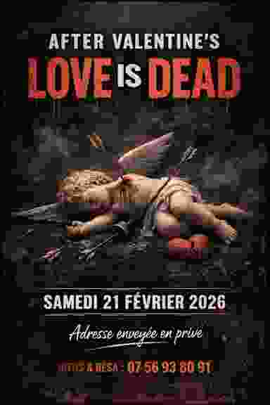 💔 VALENTINE’S IS DEAD 🔥 🩸 Soirée Spéciale — Samedi 14 Février 2026 Cupidon est tombé. L’amour est mort. Et ce 14 février… on enterre les faux sentiments. Bienvenue à la soirée la plus sombre, la plus intense et la plus addictive de la Saint-Valentin. 🖤 LE CONCEPT Que tu sois : 💔 Célibataire par choix 🖤 En couple mais rebelle 🔥 En situation compliquée 🥀 Ou simplement allergique aux roses rouges… Cette nuit est pour toi. Ici, pas de dîner aux chandelles. Pas de slow gênant. Pas de promesses inutiles. Juste : 🎧 Du son lourd 🍸 Des verres qui s’enchaînent 🩸 Une ambiance dark & passionnelle 🔥 Une énergie dangereusement séduisante 🎶 AU PROGRAMME • Hip-Hop / Afro / Latino / Shatta • Classics love toxiques & bangers anti-love • Show & surprises spéciales • Dress code conseillé : Dark / Red / Leather / Sensuel 📍 LIEU SECRET Adresse envoyée en privé après réservation. (⚠️ Places limitées) 🎟 INFOS & RÉSERVATIONS 📲 07 56 93 80 91 Tables & bouteilles disponibles. ⚰️ Cette année, on ne fête pas l’amour. On le brûle. VALENTINE’S IS DEAD. Et toi… tu viens l’enterrer avec nous ? 🖤🔥