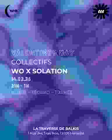 Venez célébrer la Saint-Valentin, cette nuit placée sous le signe de l’amour et du groove. Deux énergies se rencontrent et s’alignent : le collectif Solation, incarnation du soleil, et le collectif La Wo, gardien de la lune. Une soirée où les cœurs battent au rythme de la musique, portée par un voyage sonore évolutif, de la House chaleureuse et solaire aux profondeurs envoûtantes de la Techno. TIRAGE DE CARTE SUR PLACE ENTRÉE GRATUITE 🕘 21h - 1h00 Line up : 21h - 23h / Lux b2b Melo b2b Slowsky (HOUSE) 23h - 00h / Lux Lira b2b EMA (TECHNO) 00h - 1h / VV8 b2b Oz (TECHNO, TRANCE, ACID) HOUSE TO TECHNO