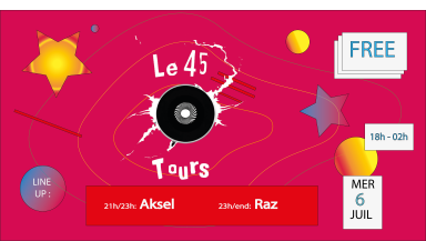 🖲 Le 45 Tours - Bar / Restaurant / Miniclub 45 Rue de Montreuil 75011 Paris Infos/ Réservations: ☎: 09 54 89 42 32 @: