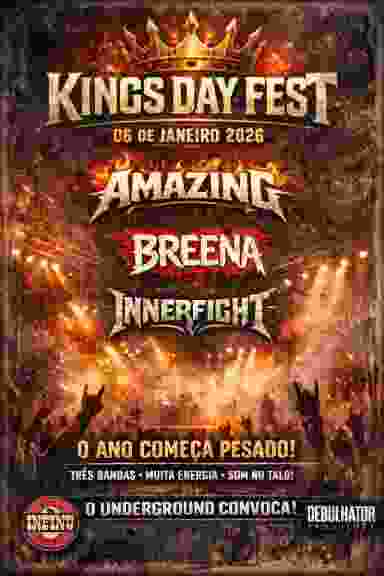 O Kings Day Fest chega com força total para abrir o ano celebrando a música pesada e autoral, reunindo três bandas que representam atitude, energia e identidade própria no cenário underground.