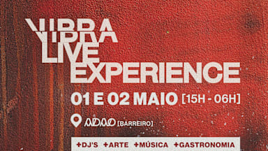 FROM ARTISTS, TO ARTISTS. Demorou, demorou mais… mas chegou o TEMPO (01 e 02 de Maio). A VI edição do VIBRA LIVE EXPERIENCE surge em formato Festival. Dois dias, mais D.J.’s, mais música, mais arte, mais gastronomia e muita cultura num espaço já ele de artistas - ADAO. O AfroHouse, o Afro e as suas derivações ganham um novo espaço, a mesma Vibe, mas a Experiência promete ser inesquecível.