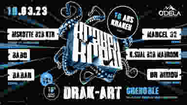 🐙 Le KRAKEN KREW 🐙 fête ses 10 ans et leur première soirée aura lieu au DRAK-ART à Grenoble. Full Line Up KRAKEN ! BIO KRAKEN KREW En 2013 le Kraken pointe le bout de ses tentacules sur un dancefloor pour la première fois. À l'occasion des 20 ans du teknival du mois de mai, les vieux sons parisiens, au lieu de se tirer la bourre pour avoir la plus belle façade, décident d’unir leurs forces et leurs années d'expériences. Un événement mémorable avec pour thème "20000 watts sous les raves" et une déco faite de tentacules géantes et lumineuses qui décidera du nom du krew. Le Kraken Krew est né !! Ce qui devait être au départ une dernière teuf pour la route avant de raccrocher les ventouses n’était en fait que le début d’une nouvelle aventure et l'équipe d'origine a été rejointe par de nombreux poulpes de talent. 10 ans de Kermesse plus tard, les voici a Grenoble pour fêter cet anniversaire comme il se doit! 🐙🐙 PAF 10E avant minuit et 12E après minuit