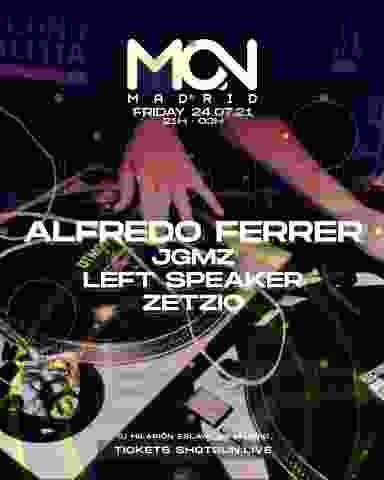 Este Viernes 23 bailamos con Alfredo Ferrer, JGMZ, Left Speaker y ZETZIO en la sala Mon en Madrid de 21:00 a 03:00.