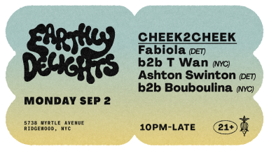 Cheek2Cheek is a high-energy celebration uniting Detroit and NYC-based DJs for b2b performances. The first in an ongoing event series, Cheek2Cheek will spotlight the creative spark between these two iconic music cities, bringing together artists who have inspired each other but who have yet to share the stage. On September 2nd, they will unite for a series of dynamic, one-of-a-kind sets. Curated by Ashton Swinton and Bouboulina (fka Veblen Defect).