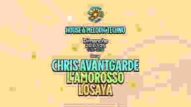 Chris Avantgarde x L'Amorosso x Losaya Line up : 18h-21h : Warm up 21h-23h : L'Amorosso b2b Losaya 23h-01h : Chris Avantgarde 01h-02h : L'Amorosso b2b Losaya