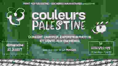 Print for Palestine et Enchères Humanitaires s’associent pour créer “Couleurs Palestine”, un concert caritatif, exposition photos et vente aux enchères le 21 juillet de 19h à 01h30. LINE-UP yassin, Oumar, Okis, Skia, NeS, Sniper et Bekar. Vous pourrez également retrouver une vente aux enchères d’objets d’artistes (merch, vinyles…) ainsi qu’une exposition photo. Print for Palestine :