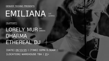 EMILIANA writes from spaces both light & dark, creating pieces to encourage catharsis. Her sets lure you into dark spaces through chaotic rhythms that harmonize with high static tones and sinister textures, making dance floors an otherworldly experience.