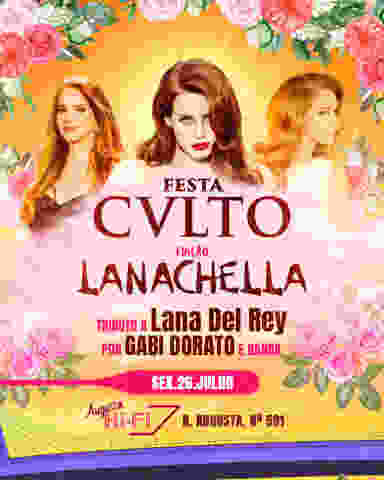 A festa Cvlto é uma festa de música indie, pop e alternativa. Gabi Dorato e banda fazem um tributo a Lana Del Rey com um setlist inspirado no Coachella 2024 além de Dj sets indie e pop Andromeda Rua Augusta 765, Pista 2