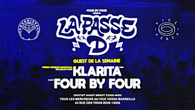 Troisième round du mois de mars ! La résidence LA PASSE D continue de faire transpirer la Secret Room du Vice Versa ce mercredi. LE CONCEPT 💡 Soutenu par la famille Twerkistan, Four by Four invite chaque mercredi les talents cachés de la scène pour une "passe décisive" musicale. On change d'univers à chaque édition, mais l'énergie reste la même. LINE-UP DU SOIR 🔥 Préparez-vous à plonger dans l'univers de notre invitée de la semaine : 🎧 KLARITA 🎤 Host : FOUR BY FOUR INFOS PRATIQUES 📍 🕙 Horaires : 22h00 - 04h00 📍 Lieu : Vice Versa - 40 rue des Trois Rois, 13006 Marseille 🎫 Tarif : GRATUIT AVANT MINUIT (Prenez votre pass sur cette page) / Payant sur place après minuit.