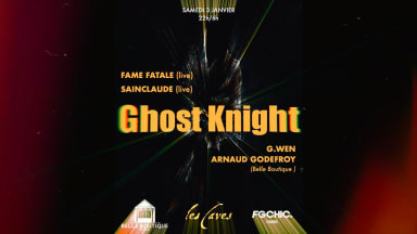 G.WEN présente : GHOST KNIGHT Une nuit dark chic et résolument mode, mêlant électronique live, new disco, new wave, glitter et électro clash, pensée comme une véritable expérience immersive. Line-up : THE FAME FATALE EXPÉRIENCE (live) https://www.instagram.com/fame_fatale_art.brut.noise/ · SAINCLAUDE (live) https://www.instagram.com/sainclaude/· G.WEN (Radio FG / Belle Boutique) · Arnaud Godefroy (Belle Boutique / Radio FG)