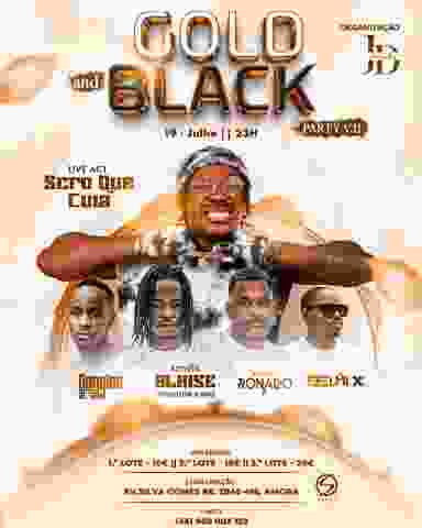 Prepare-se para a festa mais quente e estilosa do verão! 🌟✨ 🔥 GOLD and BLACK Party V.II está a chegar com tudo para incendiar a noite de 19 de julho, a partir das 23h, em Amora! Vista-se com elegância, brilhe em dourado, domine em preto porque essa noite será de luxo, batidas intensas e energia explosiva! 🖤💛 🎤 LIVE ACT: Scro Que Cuia vai comandar o palco com uma performance que promete abalar as estruturas! 🎶 A vibe continua com os melhores DJs: 🔊 DJ Danyloo 🔊 DJ Ronaldo 🔊 DJ Belmix 🔥 E ainda o artista Blaise - Jogador Caro, trazendo rimas pesadas e presença de palco única!