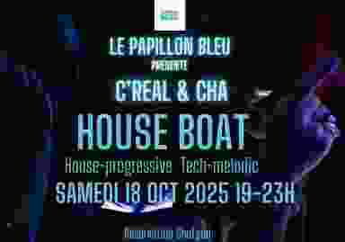 DJ Mchacharly & DJ C'real créent une expérience immersive, combinant des sonorités Electro progressives et Deep House, avec des touches de Tech house et d’Afro. Leur sélection musicale captive le public, avec des mélodies envoûtantes et des grooves entraînants. Attendez-vous à un voyage sonore qui fera vibrer les sens, créant une atmosphère festive et euphorique sur l'eau. Préparez-vous à danser sous les étoiles, bercés par des rythmes qui transcendent les frontières musicales.