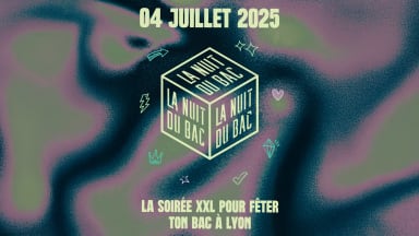 LA NUIT DU BAC LYON // Vendredi 4 Juillet 2025 🎓 SAVE THE DATE Attention… ne manque pas la soirée la plus attendue de l’année, car il n’y aura pas de session de rattrapage ! 👉 4 JUILLET 2025 👈 Le soir même des résultats, viens fêter ton Bac en plein cœur de Lyon avec tous les terminales de la ville ! ✨ Et cette année, on vous en offre encore plus… 1 soirée, 2 clubs : Commence ta nuit au Loft Club ou au Plouf, et à partir de 1h, tu pourras changer d’ambiance et rejoindre l’autre club (pour les mineurs de 17 ans et les majeurs uniquement). Attention, le Plouf n'acceptera pas les mineurs de 16 ans. Les deux lieux sont à seulement 20 minutes à pied, ou facilement accessibles en transports en commun. La Nuit Du Bac c'est... 1️⃣ La soirée XXL pour fêter ton Bac ! 2️⃣ Faire la fête entre potes ! 3️⃣ Entrer dans la vie étudiante ! 🎟 Prévente dès 10€ (mineurs et majeurs) 🕙 Accès de 22h à 5h 📍Accès au Loft Club ET au Plouf (changement possible à partir de 1h, pour les mineurs de 17 ans et les majeurs uniquement) 🧥 Vestiaires obligatoires (paiement en espèces ou CB) : Pensez à limiter vos affaires le jour J ⚠️ MINEURS AUTORISÉS À PARTIR DE : - 16 ANS MINIMUM pour accéder au Loft - 17 ANS MINIMUM pour accéder au Plouf Convocation au Bac et prévente obligatoire pour les mineurs. + AUTORISATION PARENTALE OBLIGATOIRE POUR LES MINEURS (16 et 17 ans) accompagnée d'une copie de la pièce d'identité d'un des parents. À COMPLÉTER pour le before : télécharge-la ici -> https://drive.google.com/file/d/1d9pctExP43_-JieG-dNCkwRsSEHDEmeA/view?usp=share_link Étape 1️⃣ : Réserve ta place en ligne. Étape 2️⃣ : Si tu es mineur(e), télécharge et fait remplir à tes parents l'autorisation parentale. Étape 3️⃣ : Viens récupérer ton bracelet au Before (passage OBLIGATOIRE pour les mineurs) le 4 juillet entre 14h et 19h. L'adresse vous sera communiquée prochainement sur Instagram @lanuitdubaclyon ! Attention : Pour permettre l'accès au club, les bracelets doivent être conservés au poignet et ne doivent pas être abîmés. Pour des raisons de sécurité, il ne vous sera pas possible de retirer le bracelet d'un camarade lors du Before. _________________ ⚠️ IMPORTANT : À RETENIR POUR L'ÉVÈNEMENT ■ PIÈCE D'IDENTITÉ OBLIGATOIRE (avec photo et date de naissance, pas de présentation sur téléphone). ■ Les préventes majeurs et mineurs sont limitées. Si un mineur réserve une place "majeur", aucun remboursement ne pourra être effectué. De même, si un mineur âgé de moins de 16 ans réserve une place "mineur" sous une fausse date de naissance aucun remboursement ne sera effectué pour cause de tentative de fraude. ■ Convocation au Bac, autorisation parentale, prévente et before OBLIGATOIRES pour les MINEURS (âge minimum : 16 ans révolus le 4 juillet au soir pour le Loft et 17 ans minimum pour le Plouf). ■ Afin de préserver l'environnement, nous te conseillons de télécharger ta place sur ton smartphone ce qui te permettra de la présenter rapidement à l'entrée du club et d’éviter de l'égarer. Pensez à charger votre téléphone. ■ Nous rappelons qu'aucun alcool ne sera servi aux mineurs. L’abus d’alcool est dangereux pour la santé, à consommer avec modération. ■ L'établissement se réserve le droit d'entrée. Tenue correcte exigée : évitez les jeans troués, les claquettes, les joggings et les shorts. _________________ 📲 RÉSEAUX SOCIAUX ■ Facebook : La Nuit du Bac Lyon ■ Instagram : @lanuitdubaclyon ■ TikTok : @lanuitdubaclyon ■ Site web + FAQ : www.lanuitdubaclyon.fr ■ Le compte à suivre pendant tes études : @soireesetudianteslyon ■ Rejoins la communauté des étudiants lyonnais : Soirées Étudiantes Lyon _________________ 🚇 ACCÈS AUX LIEUX LOFT CLUB LYON 7 Rue Renan 69007 Lyon Arrêt « Jean Macé » (métro B ou tram T2) PLOUF 21 Quai Victor Augagneur 69003 Lyon Arrêt "Liberté" (tram T1)