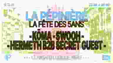 ▰▰ 𝗖𝗢𝗡𝗖𝗘𝗣𝗧 5 ans déjà. 5 ans de rencontres, de découvertes, d’engagement pour la scène électronique. 5 ans de péripéties, d’idées, de projets, d’expériences. Pour la première fois, on fête notre anniversaire. Et cet événement arrive à un moment clé de notre parcours. Ce sera une date symbolique. Un moment qu’on veut rendre intense, singulier, mémorable. Un moment à partager avec vous. Il y aura un avant et un après. Alors soyez là, pleinement, pour le moment présent. ▰▰ 𝗟𝗜𝗡𝗘-𝗨𝗣 - Kōma [Gimic / Nice People Dancing] - Hermeth B2B Secret Guest (annoncé le 30 novembre) - Swooh [boisha / Astropolis] ▰▰ 𝗕𝗜𝗘𝗡𝗩𝗘𝗜𝗟𝗟𝗔𝗡𝗖𝗘 Nous mettons un point d'honneur à conserver une ambiance "safe" au sein de nos événements. Respect d’autrui et liberté de toustes sont des valeurs sur lesquelles nous ne transigerons jamais. Toute personne ayant des comportements allant à l’encontre de ces principes pourra se voir exclure de notre événement sans sommation. N’hésitez pas à nous signaler tout problème ! L'achat d'un billet ne garantit pas l'accès à l'événement. L'équipe organisatrice se réserve le droit de refuser l'entrée à toute personne en état d'ébriété manifeste ou présentant des comportements allant à l'encontre de nos principes de bienveillance. Identité visuelle : Roman Berriot