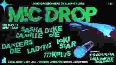 ✦ M!C DROP ✦ MAY 17 ✦ UNDERGROUND LIVE MUSIC ✦ LIVE ART ✦ DJs VENDORS ✦ CREATIVE CORNER ✦ GOOD VIBES Meet different corners of the underground ALL IN ONE NIGHT with local rappers, bands, DJs, visual artists and vendors! Join us Friday May 17th for an unforgettable night at The Sandbox Stage 💥 🎤 Come early for the DJs + live bands + rappers 👨‍🎨 Watch artists create a collective painting 🤲 Get local art, jewelry and clothing 🖍️ Make art in our Creative Corner with community materials YOU DON'T WANNA MISS OUT‼️ ✦ Live Performances Sasha Camille@sashacamille_ Duke Ote @dukeote Dancers Die @dancersdie Loki Star @lokistarofficial 777KPLUS @777kplus LADYBUG @0.ladybug ✦ Sounds by Miss Purple Shampoo @misspurple.mp3 & 1-800-LOLITA @lovelylolooo ✦ Live Painting ✦ Vendors 🎚️ Sound Engineering by Goon Green @goon.green 💥 Visuals by Nika @chro.lik 🎨 Creative Direction by Lunes @notlunes 🗺️ PARKING GUIDE WILL BE POSTED ON INSTAGRAM DAY OF 🚕 UBER/CARPOOL RECOMMENDED 🚪 $20 at the door 🪪 18+ ID must be shown to enter. All ticket sales are final and nonrefundable. www.instagram.com/alwayslunes www.alwayslunes.com