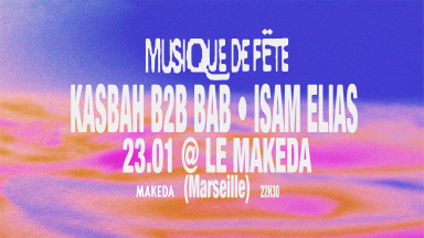 🔥 Musique de Fëte : Bab & Kasbah · Isam Elias Live 🔥 📅 Vendredi 23 janvier 2026 - 22h30 📍 Le Makeda, 103 rue Ferrari, 13005 Marseille Le Makeda accueille une soirée exceptionnelle placée sous le signe des rythmes orientaux, des sonorités électroniques et des voyages musicaux hybrides. Pour cette nouvelle date Musique de Fëte, trois artistes phares de la scène électro-orientale contemporaine se réunissent pour un moment festif, intense et profondément inspiré. 🎧BAB Membre du collectif Musique de fête, DJ, Bab brille également dans la production musicale à travers son projet solo. Il a déjà signé sur des labels tels que Nowadays Records, Hard Fist, Crowdspacer et Macadam Mambo. Une musique inspirée par des sonorités mélodiques d'Algérie, qui, associée aux synthétiseurs et aux boîtes à rythmes, offre une vision contemporaine de cet héritage. Un patchwork oscillant entre musique de club et musique traditionnelle. Il a déjà eu la chance de jouer au Rex Club à Paris, à Elsewhere à NYC, au Bar Americas au Mexique, et bien d'autres entre Berlin et Londres, mais aussi dans des festivals tels que Nuits Sonores, We Love Green, Le Bon Air, La fête de l'Humanité... 👉 Instagram : https://www.instagram.com/babmnd/ 👉 Youtube : https://www.youtube.com/@babmnd 👉 Spotify : https://open.spotify.com/intl-fr/artist/6d9aYoNbyYgHt8zUlOjyB4?si=ZHdd8U3pRYKObKm9XYOUCg 👉 Soundcloud : https://soundcloud.com/babmnd 👉 TikTok : https://www.tiktok.com/@babmnd 🎧 KASBAH Le DJ et producteur KasbaH est l'un des artistes les plus innovants de la scène électronique française et a fait le tour des plus grandes scènes (Cabaret Sauvage, Institut du Monde Arabe, Lollapalooza, Sziget, Fête de L'Humanité, United We Stream, ...). Résident pendant 5 ans pour les soirées Habibi Love, KasbaH a pu cimenter le lien entre les rythmes orientaux et la musique club des années 90. Il s'attache à développer un pont créatif entre la musique traditionnelle et la musique club, qu'il appelle tradi/club. Mais KasbaH ne voyage plus seul. À ses côtés se trouve désormais le collectif , qu'il a cofondé avec le label . Le collectif Musique de Fête a pour but de mettre en lumière la scène électronique orientale avec une série de mixtapes et de soirées en Europe et au Maghreb. Le collectif a également réuni KasbaH et le producteur Bab, qui ont sorti l'EP rai & bass Mektoub 303 en juin dernier pour rendre hommage aux racines algériennes de KasbaH. Ils ont également créé la résidence bimensuelle Salle des Fêtes au Cabaret Sauvage à Paris. Ainsi, après de nombreuses années à célébrer l'acid, la techno, le breakbeat et la musique percussive, le producteur hyperactif sort son nouveau projet Blédard.es de France ++. 👉 Instagram : https://www.instagram.com/kasbahofficiel/ 👉 Facebook : https://www.facebook.com/KasbaHofficiel/?locale=fr_FR 👉 Youtube : https://www.youtube.com/@KASBAHofficiel 👉 Spotify : https://open.spotify.com/intl-fr/artist/1npID7VMjUphlLHTtks7B0?si=7_eOSB1tS86HJH9SwVs1Kg 👉 TikTok : https://www.tiktok.com/@kasbah.official 🎧 ISAM ELIAS Isam Elias est un pianiste, compositeur, chanteur et auteur palestinien. Né en 1991 à Nazareth, il a été très tôt touché par la musique arabe traditionnelle et a commencé à jouer du piano à 6 ans. Il a cofondé le groupe Ghazall Band, en tant qu'auteur, pianiste et claviériste. Leur premier album A Tareeq, est sorti en 2017. La même année, Isam Elias est diplômé de la Rimon School of Jazz & Contemporary Music, avec une spécialisation en interprétation au piano et en production musicale. Il a également cofondé Zenobia, un duo électrique combinant des mélodies pop arabes, des rythmes dabkeh palestiniens/syriens, des synthés et des rythmes puissants avec des relents dub occasionnels. Ils ont sorti leur premier album Halak Halak en 2019 sous le label Crammed Discs Records. C'est en 2024 qu'Isam Elias crée son projet Solo à Paris. Le projet lui-même est un voyage à travers productions occidentales et rythmes, mettant le piano au premier plan aux côtés de synthétiseurs, avec des vibrations de danse afro-orientales et des touches de dancehall. Mêlant les mélodies folkloriques orientales à des sons électroniques puissants avec des rythmes de dabkeh et de danse du Moyen-Orient. 👉 Instagram : https://www.instagram.com/isam.elias/ 👉 Facebook : https://www.facebook.com/isameliasofficial 👉 Spotify : https://open.spotify.com/intl-fr/artist/11oxh46Sp5uHrNnGQ2qV7X?si=C2Be9k4eRKygUAlYLUQfwA 📍 INFOS PRATIQUES 🕗 Ouverture des portes : 22H30 📍 Adresse : Le Makeda, 103 rue Ferrari, 13005 Marseille 🚇 Accès : * Métro 1 – station Baille ou La Timone * Bus : lignes 54, 72, 518 * Parking à proximité (Baille / Timone) * ♿ Accès PMR Tarif : 10€-12€ Le Makeda, salle de concert festive, bienveillante et engagée