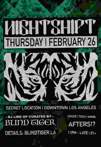 At any of our ‘Nightshift’ events you can expect to hear a strong minimal bass groove, paired with a relentless dark & sexy beat. “Nightshift” is an artist collective & underground house music community based in Los Angeles, CA. Deeply rooted in the after hours scene, the music at our “secret afters” is dark & sexy. A strong underlying bass groove, paired with a relentless 4x4 beat is the back bone of the whole night. In modern world of electronic music driven by social media, we pride in showcasing the hottest up and comers in house music as well as veterans. In addition to that - we give underground house music an outlet for DJs to perform a set different from something people expect to hear or “back to back” with their friends in a low pressure environment. You can expect secret guests on any night, you never know who might show up!