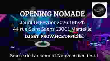 Le Nomade, nouveau spot festif, lance son opening Jeudi 19 février dès 19h 🥂 On vous attend pour boire un verre et fêter ensemble ce grand moment 🎉 Nouveau lieu, ambiance festive & dansante Nouvelle expérience 100% good vibes ! 🍸 Belle carte pour l’apéro, à découvrir sur place 🎶 DJ Set PROVANCE OFFICIEL 📍 44 rue Saint Saens, 13001 Marseille 🎟️ Bracelets VIP accès prioritaire sur réservation : 06 88 46 14 91 👉 Ne ratez pas ça, la soirée commence ici !