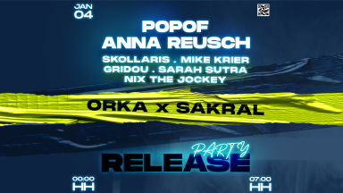 Après avoir navigué ensemble sur les eaux agitées de 2024, ORKA et SAKRAL s'unissent de nouveau pour célébrer la 2ème sortie du Label SKRL ! Deux figures emblématiques guideront l’équipage : 🔹 POPOF – Acteur incontesté de la techno mondiale qui a marqué la scène électronique avec des productions légendaires, revient pour défendre son dernier EP en collaboration avec Skollaris. 🔹 ANNA REUSCH – elle manie la techno avec précision et passion dans ses productions acclamées sur Drumcode et Arcane La team Orka / Sakral fidèle à l’équipage : 🔹 Skollaris 🔹 Mike Krier 🔹 Gridou 🔹 Sarah Sutra 🔹 Nix the Jockey À L’ABORDAGE ! 📍 Orka Club, 4 Quai Saint-Bernard, Paris ⚓ 2 floors + chill + open air ⏰ 00h - 07h