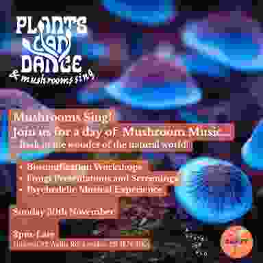 We'll be exploring their bioelectrical signals and how we can make music from them as part of our biosonficiation workshop, were everyone can get involved. We'll be hearing from fungi experts such as fungi photographer Max Mudie and artist Jananicole from the All Things Fungi festival, Simon Bateman from Flow Brew functional mushrooms, and also researchers from Imperial College's Centre For Psychedelic research, with more to be announced.