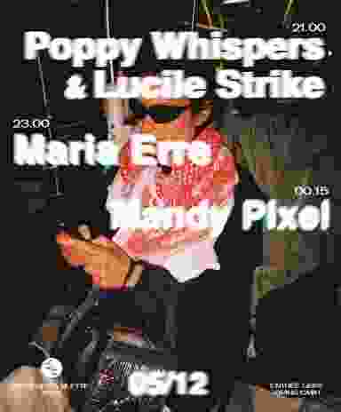 PARIS - 05 DÉCEMBRE AU 9B Belleville 🚨💥 21h30 (LIVE) POPPY WHISPERS, LUCILE STRIKE & LES CHIENNES ERRANTES @poppywhispers @lucile_strike @beatriceborso @feddericara @mandy.pixel Poppy Whispers & Lucile Strike forment un duo de chercheuses visuel et sonore . Vagabonde tout-terrain, partant à l’aventure le ventre en feu. Poppy Whispers fait de la musique pour donner à joie et rage un espace immatériel. Inspirée par un large éventail de musique, elle cherche à échapper les genres, en rythmant d’interrogations notre condition présente. Lucile Strike documente les traces de lumière, les impulsions, les élans, les doutes. Elle les projette lors des concerts, mélangeant flashs et caresses pour faire échos aux chants de sirènes de Poppy Whispers. ~~~~~~~~~~~~~ 23h00 MARIA ERRE @bande.image DJ et vidéaste, j’explore à travers mes images et mes sons la lutte intérieure pour préserver notre humanité dans un monde oppressant, mêlant mélancolie, résistance et espoir. ~~~~~~~~~~ 00h15 MANDY PIXEL @mandy.pixel Mandy Pixel est une DJ et artiste audiovisuelle basée à Bruxelles. Ses sets cabossé viennent perturber le familier en nous enlaçant dans des rêves peuplé d’inconnu·es. Son travail hybride aux frontières du cinéma, du son et de la performance se distingue par une approche militante et optimiste.