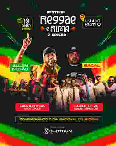 O Reggae e Rima tá de volta! No embalo das boas vibrações, vem aí a 2ª edição desse festival que é pura energia, muita vibe, cultura e resistência. Dia 10 de maio, no clima mágico da Villa do Porto @vila_do_porto , vamos celebrar o Dia Nacional do Reggae com um line-up de peso: Allan Negão, Sacal, Parahyba Ska Jazz e Lukete & Seus Renatos vão comandar essa noite inesquecível de música, poesia e conexão. Se prepara pra dançar, cantar e sentir o coração vibrar no ritmo da positividade! Vendas online: Shotgun Reggae é rima, é vida, é raiz! 🇬🇳 Serviço: Reggae e Rima 2 Edição data Sábado 10 de maio 22 horas Vila do Porto Largo de São Frei Pedro Gonçalves,8 Varadouro, Centro Histórico Entrada: 30$ Obrigatório na ENTRADA apresentação dos seguintes documentos: - Documento com foto (CNH ou RG) - Menor de idade, confirmar a classificação do show e documentos junto a casa (Via DM no Instagram) - Na ausência de comprovação ou kg de alimento será cobrado uma taxa referente ao valor da inteira.