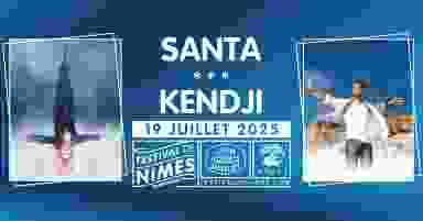 SANTA & KENDJI seront sur la scène du Festival de NÎMES le Samedi 19 Juillet 2025 ! SANTA, l’artiste qui a marqué les esprits avec son tube « Popcorn Salé » certifié diamant, et qui continue de faire danser avec son nouveau single « Recommence-moi », se prépare à conquérir le public de Nîmes. Après avoir rempli des salles comme le Trianon et la Salle Pleyel à Paris, elle poursuit sa tournée 2024 et s’apprête à défendre son premier album « Recommence-moi » dans les Zéniths de France en 2025. Avec son énergie débordante et son univers frais et moderne, SANTA offrira un show à la hauteur de ses succès. De son côté, KENDJI, qui fête ses 10 ans de carrière en 2025, viendra célébrer cette décennie de succès avec son public. L’artiste, avec plus de 6 millions d’albums vendus et 2 millions de spectateurs, proposera un voyage musical inoubliable, entre ses plus grands tubes comme « Color Gitano », « Andalouse » ou« Habibi », et ses nouvelles créations. Ce concert sera l’occasion de revivre des moments mémorables et de créer de nouveaux souvenirs avec un artiste qui ne cesse de marquer l’histoire de la musique française.