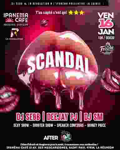Vendredi 16 Janvier a l’ipanema café c’est la soirée SCANDAL ! Au programme show sexy 🌶️ Shooter Show, Money Price pour celle ou celui qui aura le meilleur déhancher 🍑 Dj Sebb - Dj SM - Deejay PJ After au coco beach