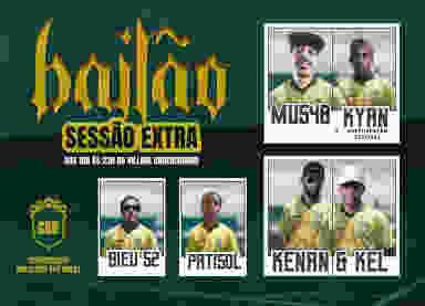 Depois do sold out relâmpago, tentamos de todas as formas criar uma oportunidade de quem ficou de fora poder curtir os sets dos artilheiros da nossa seleção. E assim foi: no dia 04/10 vai ter dose dupla de MU540 convida KYAN e de KENAN & KEL! E dessa vez escalamos BIEU s2 e PATISOL pra fechar o time dos sonhos. A sessão extra acontece de 18h a 23h no Village Underground (área externa).