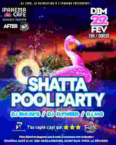 La mensuelle Shatta Pool Party de l’ipanema ! Au programme bon son, bonne vibes et pool party ! Dj Rhum’s, Dj Mg & Dj Flyweed.
