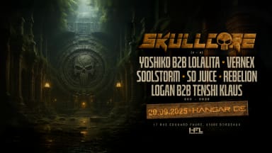 SKULLCORE w/ YOSHIKO b2b LOLALITA / VERNEX / SOOLSTORM / SO JUICE / REBELION / LOGAN b2b TENSHI KLAUS SAM. 20/09 // 00h00 - 06h30 📍HANGAR DS - 17 rue Édouard Faure, 33300 Bordeaux __________________________________________________ 𝗟𝗜𝗡𝗘-𝗨𝗣 : YOSHIKO