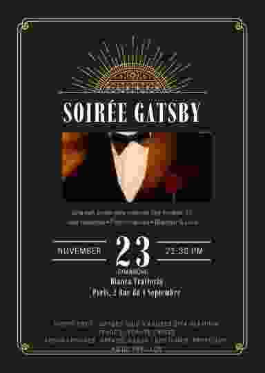 ✨ Soirée Gatsby – 23.11 ✨ Plonge dans l’effervescence des années folles : Élégance, plumes, touches d’or et une ambiance digne des plus belles fêtes de 1920… Prépare-toi pour une nuit qui brillera plus que le champagne. 🍾✨ 💫 Dress to impress. 🎭 Invités spéciaux… (surprise à venir)