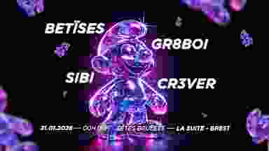 Têtes Brulées débarque pour une troisième édition à La Suite avec en guests Betïses et Gr8boi, accompagnés de nos résidents Cr3ver et Sibi.