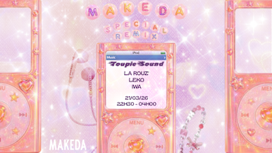 🎶 Makeda X Toupie Sound Spécial Remix #3 🎶 📅 Vendredi 21 mars - 23h 📍 Le Makeda, 103 rue Ferrari, 13005 Marseille 💿 Spécial Remix #3 💿 Le collectif marseillais Toupie Sound débarque au Makeda avec ses iPod et lecteurs MP3 pour une troisième édition Spécial Remix, dédiée aux incontournables du TOP 50 des années 2000 à aujourd’hui. ✨Le crew Toupie Sound ✨ Aux platines on retrouve nos résidents pour un B2B explosif. LA ROUZ’ X LEKO (un gars/une fille) fusionnent leurs influences House, Electro, Trance et Bouncy pour revisiter vos hits préférés en version club, entre nostalgie et énergie contemporaine. 🎧LA ROUZ’ La Rouz’ est un DJ du Collectif Toupie Sound, connu pour leurs soirées Multivibe qui fédère lors de soirées festives à Marseille. DJ survolté et toujours chaud pour retourner le dancefloor, La Rouz’ a préparé un Set entre nostalgie 2000’s et techno bouncy, le combo parfait pour danser, chanter et crier 👉 Instagram : https://www.instagram.com/la.rouz.dj/ 👉 SoundCloud : https://soundcloud.com/francois-rouzier 🎧 LEKO Leko, une DJ voyageuse cosmique musicale débarque pour un set spécial ! Entre sons emblématiques des années 2000 remixés, survitaminés, elle tisse des transitions où nostalgie et énergie s’entrelacent. Prépare-toi à un voyage dans le temps version dancefloor ! 👉 Instagram : https://www.instagram.com/leko.dj/ 👉 SoundCloud : https://soundcloud.com/lekooooo ✨Invitée spéciale ✨ 🎤 IWA Chanteuse évoluant dans un univers Electro-pop aux influences UK Garage et Bass Music, basée à Paris. Artiste à l’énergie frontale et hautement inflammable, IWA dit les choses sans détour. Ses textes en français, à la plume acérée et poétique, explorent l’intime, l’urgence et l’émancipation. Telle une guerrière, elle aborde des thèmes engagés et actuels dans lesquels chacun·e peut trouver un écho. Pour cette édition spéciale, elle proposera également des reprises de titres emblématiques des années 2000, revisités à travers son univers singulier. 👉 Instagram : https://www.instagram.com/iwa_music 👉 Youtube : https://youtu.be/AiBgpJJUPcU?si=KU2TriKlDNIqH_MM 👉 Spotify : https://open.spotify.com/intl-fr/track/6X1ZBW0WoWmGWzzIcWqWly?si=7a6dc84aa35c4a5a 💿 PLAY. VOLUME A FOND 💿 📍 INFOS PRATIQUES 🕗 Ouverture des portes : 23h 📍 Adresse : Le Makeda, 103 rue Ferrari, 13005 Marseille 🚇 Accès : Métro 1 – station Baille ou La Timone Bus : lignes 54, 72, 518 Parking à proximité (Baille / Timone) ♿ Accès PMR 🪩 Le Makeda, salle de concert festive, bienveillante et engagée