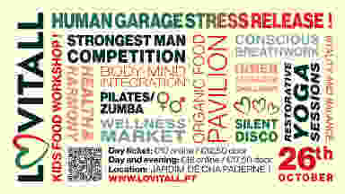 Join Us for the Lovitall Health Event – October 26, 2024! Experience a day of transformation, celebration, and connection at the Lovitall Health Event, where health, wellness, and joy come together for an unforgettable experience. This full-day event, set in the beautiful Jardim de Chá in Paderne, is designed to nurture your mind, body, and soul in a serene environment. Event Details: - Date: October 26, 2024 - Day Event: 10:00 - 17:00 - Evening Event: 18:00 - 23:00 (Optional) - Location: Jardim de Chá, Paderne Discover a variety of exciting activities designed to promote holistic wellness: What’s included in the day Event: - Strongest Man Challenge – Unleash your inner warrior and compete for the top prize! - Silent Disco – Immerse yourself in music with a fun, unique dancing experience. - Meditation – Achieve inner calm and mental clarity. 10.30 main stage - Human Garage Stress Release Workshop – Let go of stored tension with cutting-edge fascial maneuvers. 11.30 main stage Book a 1:1 personalized treatment for deeper healing. - Practical daily energy routine 12.30 mainstage - Pre-Menopause Yoga – A soothing session followed by a thought-provoking aftertalk to help you understand your body’s needs. 14.00 main stage - Pilatus / Dance for men and women - An effective workout that strengthens and stretches your muscle groups to get a strong but also flexible body. We finish with a dance workout . 15.30 main stage Workshops tea garden included - Experience the Runes workshop - 10.30 - Breathwork Workshop – Master the art of breath to relieve stress and increase vitality. 12.00 - Nova Therapy lecture 13.00 - Gut Health Lecture – Learn how maintaining a healthy gut can transform your overall well-being 13.30 - Unlock the path of your genius (combination 9 star keys- humandesign- gene keys) 14.30 Optional - Follow your heart workshop 11.00 and 15.00. Iris will invite you to an inner journey to discover the true desires of your heart . 75 minutes €15.- Other activities - Health Market – Explore stalls featuring a range of holistic health products and services. -Massages – Various massage therapists - Organic Food & Tea Tasting – Indulge in the finest organic cuisine produced at the Quinta, complemented by an immersive tea tasting experience. Ticket Prices: - Day Pass: €10 - Kids (12 and under): Free - Combination Day & Evening Ticket: €15 --- Evening Event Highlights: Continue the fun into the night with an evening full of music, dance, and celebration: - Salsa Workshop – Feel the rhythm and move to the Latin beats in this lively dance workshop. 18.30 main stage - Cacao Ceremony – Open your heart in this sacred experience, filled with intention and connection. Additional booking €10,- 18.30 Tea garden - Shamanic Drum Session – Connect with ancient rhythms and ground yourself in this powerful drum circle, fostering deep emotional release and spiritual healing. 19.30 Tea garden - Dancing with the band sexual chocolate – Groove to the beats and dance under the stars! 19.30 mainstage - Nicole Silver Live Performance – Let the Algarve’s star singer take you on a magical musical journey. 21.00 main stage - Silent Disco – Dance to your favorite tunes with three unique music channels to choose from. -Food Stalls and product booths - will keep you energized and inspired throughout the night. Ticket Prices for the Evening Event: - Evening Pass: €10 - Kids (12 and under): Free - Combination Day & Evening Ticket: €15 - Cacao ceremony €10 --- Don’t Miss Out! Whether you're looking to relax, re-energize, or simply have fun, the Lovitall Health Event offers something for everyone. Enjoy a day of wellness and a night of celebration – all in one incredible event! Book your ticket online NOW and save €2.50. Secure your spot and experience the ultimate health and wellness event of 2024!