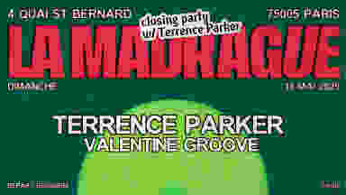 Closing Party • La Madrague, Paris • 18 mai 2025 Le mini-festival sur l'eau au cœur de Paris 🛳️ 👉 Dimanche 18 mai 2025 (18H > 00H) : Terrence Parker · Valentine Groove 18H00 : Ouverture des portes 19H20 : Départ du bateau en croisière 20H15 > 21H30 : Valentine Groove 21H15 : Retour du bateau à quai 21H30 > 00H00 : Terrence Parker 🌊 10 croisières, +50 artistes, 7 all night long jusqu'à 03/05H 📍 4 Quai Saint-Bernard, Paris 75005 🥪 Restauration sur place avec Collé Braisé de 19H00 à 22H30.